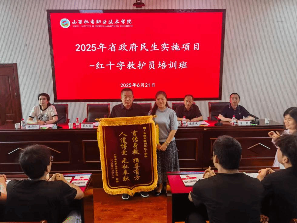 开班仪式上,李粉霞代表学院向长治市潞州区红十字会赠送锦旗,以表达对红十字会长期以来对学院工作倾力支持的诚挚感谢。双方达成共识,将进一步加深合作交流,致力于将急救教育深度融入校园文化,为构建平安校园、助力健康中国建设持续注入强大动力。